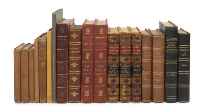 COSSIGNY, Joseph Francois Charpentier de. Voyage a Canton. Paris: [1799]. -- DAVIS, John Francis. The Chinese: A General Description of the Empire of China and its Inhabitants. London: Charles Knight, 1836. 2 volumes. -- TIFFANY, Osmond. The Canton Chinese, or the American’s Sojourn in the Celestial Empire. Boston and Cambridge: James Munroe and Company, 1849. -- HUC, M. A Journey Through the Chinese Empire. New York: Harper & Brothers, Publishers, 1855. 2 volumes. -- GRAY, John Henry. China. A History of the Laws, Manners, and Customs of the People. London: Macmillan and Co., 1878. 2 volumes. -- And 8 others. Together, 13 works in 18 volumes, 8vo, most first editions, all in 19th and 20th-century half leather, cloth or printed boards, condition generally good, complete list available on request.