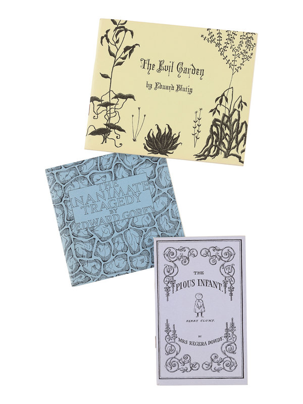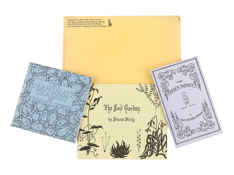 GOREY, Edward (1995-2000). Three Books from the Fantod Press, Set I: The Evil Garden; The Inanimate Tragedy; The Pious Infant. N.p.: The Fantod Press, 1966.