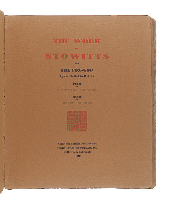 [CHINESE ART & OPERA]. STOWITTS, Hubert Julian (1892-1953). The Work of Stowitts for the Fox-God. Lyric Ballet in 3 Acts. Hollywood, CA: George Palmer Putnam, Inc., 1939.