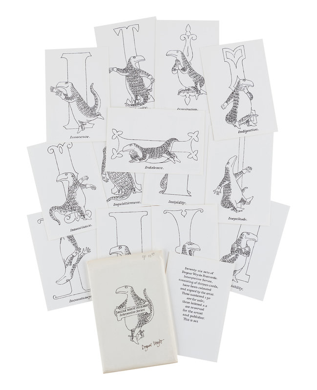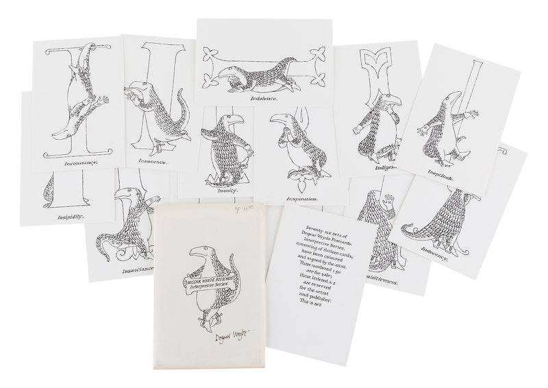 GOREY, Edward (1925-2000). Dogear Wryde Postcards. Alms for Oblivion Series. N.p., 1978. -- Dogear Wryde Postcards. Interpretive Series. N.p., 1979.