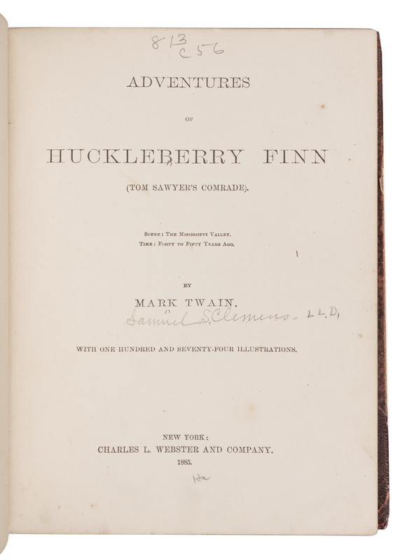 CLEMENS, Samuel Langhorne ("Mark Twain") (1835-1910). Adventures of Huckleberry Finn (Tom Sawyer's Comrade). New York: Charles L. Webster and Company, 1885.