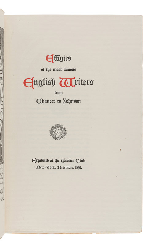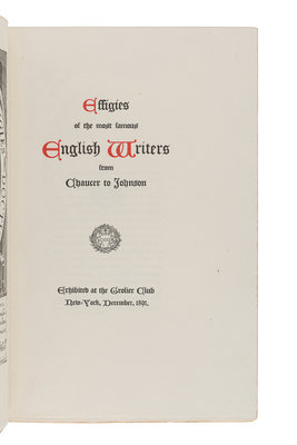 [CLUB BINDERY] -- [GROLIER CLUB]. Effigies of the Most Famous English Writers from Chaucer to Johnson. New York: The De Vinne Press for the Grolier Club, 1891.