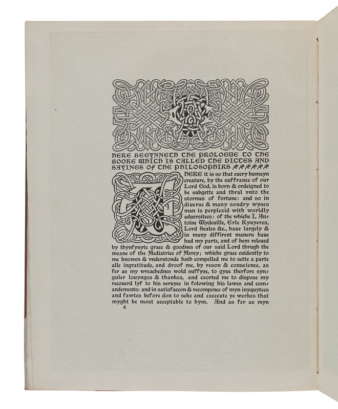 [CRANBROOK PRESS]. CAXTON, William (1422?-1491). The Dictes and Sayings of the Philosophers: A Facsimile. Detroit: Cranbrook Press, 1901.