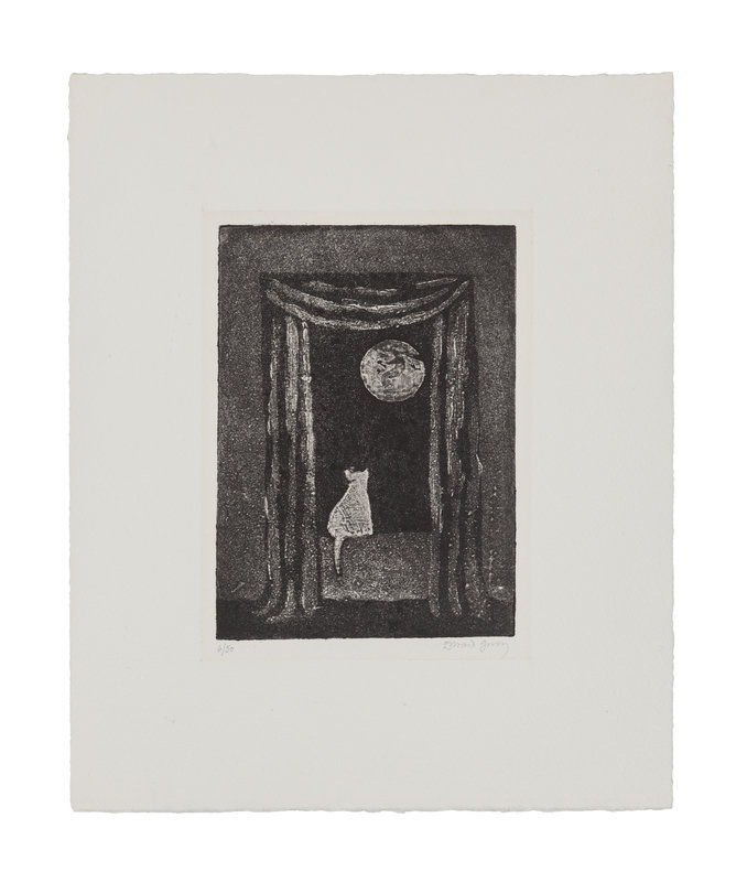 GOREY, Edward (1925-2000). Cat in Window observing Night Moon. [New York: Gotham Book Mart, 1985].