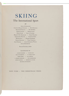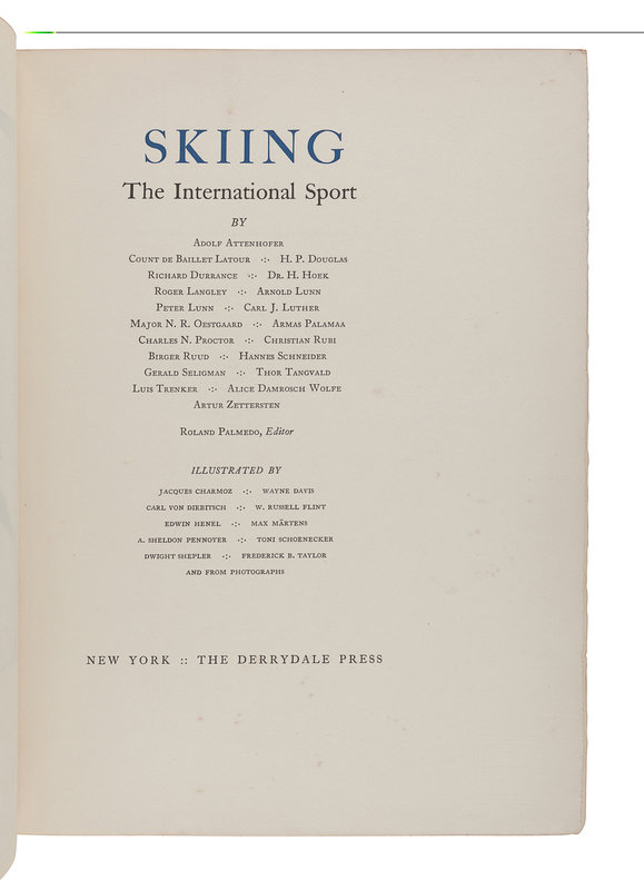 [DERRYDALE PRESS] -- PALMEDO, Roland (1895-1977), editor. Skiing: The International Sport. New York: The Derrydale Press, 1937.