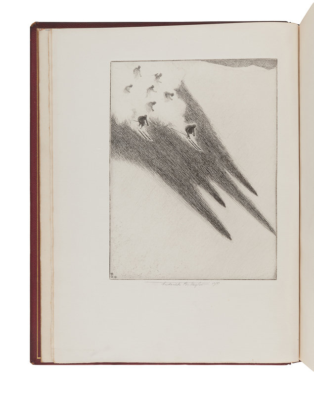4to. Etched frontispiece signed by Frederick B. Taylor in pencil lower margin, numerous photographic plates and illustrations by Jacques Charmoz, Wayne Davis, Carl von Diebitsch, W. Russell Flint, Edwin Henel, Max Martens, A. Sheldon Pennoyer, Toni Shoenecker, Dwight Shepler and Frederick B. Taylor. Red gilt-stamped morocco, top edge gilt others uncut, stamp-signed Jas. MacDonald Co., N.Y. (rubbing to extremities and wear to head of spine, hinges separating). Provenance: A. P. Sauer (signature, 1937).