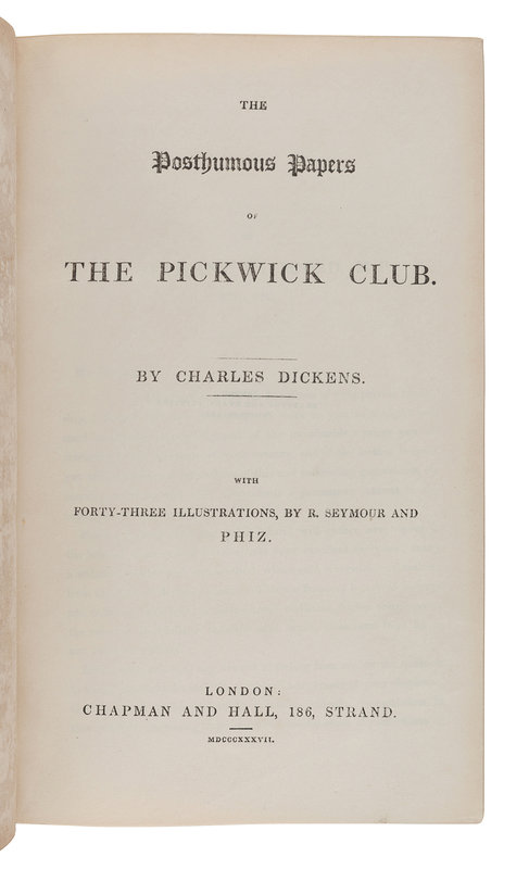 DICKENS, Charles (1812-1870). The Posthumous Papers of the Pickwick Club. London: Chapman and Hall, 1837. [Bound with:] PAILTHORPE, Frederick W. 24 Illustrations to the “Pickwick Club.” London: Robson and Kerslake, 1882.