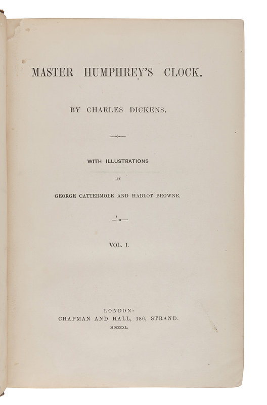 DICKENS, Charles (1812-1870). Master Humphrey’s Clock. London: Chapman and Hall, 1840-1841.