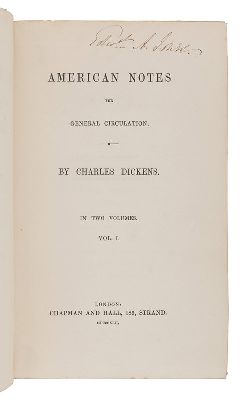 DICKENS, Charles (1812-1870). American Notes For General Circulation. London: Chapman and Hall, 1842.