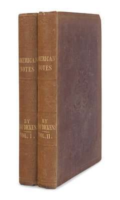 FIRST EDITION, FIRST STATE, with the second page of the vol.I table of contents misnumbered as page xvi and 6pp. of advertisements at the end of vol.II. Dicken’s preface to American Notes was removed from the preliminary pages and the original pagination was not immediately altered, as here, in the first state, with p. x incorrectly numbered xvi. In the second state, the preliminaries were reprinted with the correct pagination. The preface was not published during Dickens’ lifetime, and first appeared in Forster’s biography of Dickens. Eckel, p 108; Gimbel A66; Smith 2:3