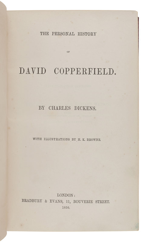 DICKENS, Charles (1812-1870). The Personal History of David Copperfield. London: Bradbury & Evans, 1850.