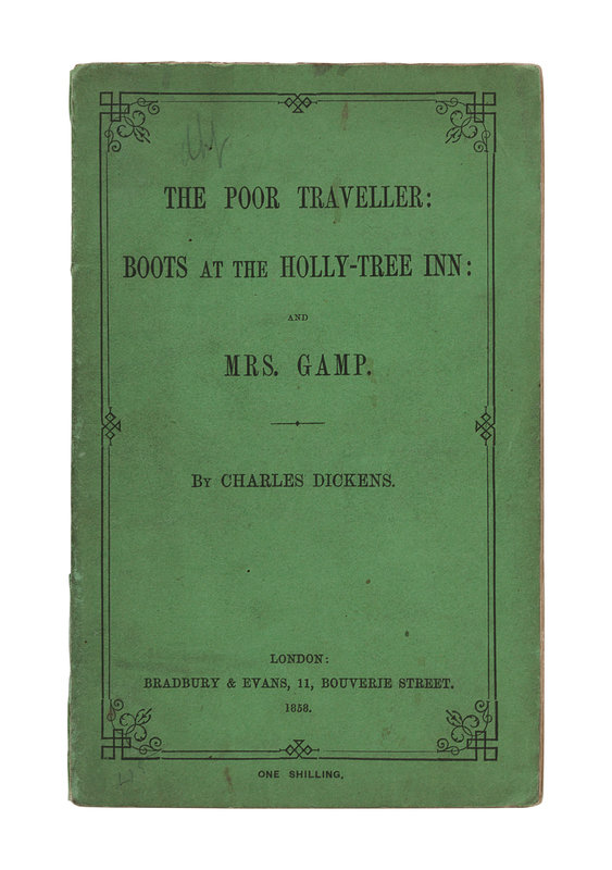 DICKENS, Charles (1812-1870). The Poor Traveller: Boots at the Holly-Tree Inn: And Mrs. Gamp. London: Bradbury & Evans, 1858.