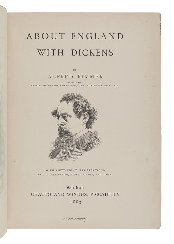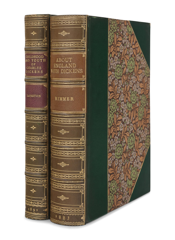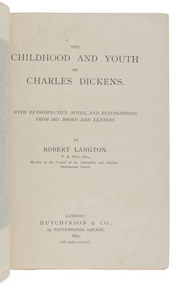 RIMMER, Alfred. About England With Dickens. London: Chatto and Windus, 1883. 8vo. -- LANGTON, Robert. The Childhood and Youth of Charles Dickens. London: Hutchinson & Co., 1891. 8vo. -- STONEHOUSE, John Harrison. Green Leaves: New Chapters in the Life of Charles Dickens. London: Henry Sotheran, 1931. 5 volumes, 8vo. Original printed wrappers.