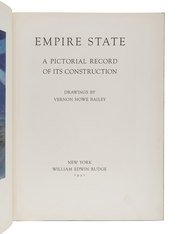 [ARCHITECTURE & DESIGN]. BAILEY, Vernon Howe (1874-1953). Empire State. A Pictorial Record of Its Construction. New York: William Edwin Rudge, 1931.