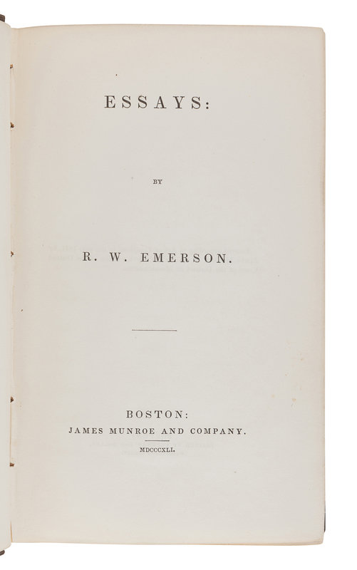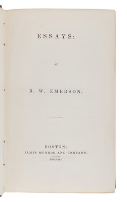 EMERSON, Ralph Waldo (1803-1882). Essays. Boston: James Munroe and Company, 1841.