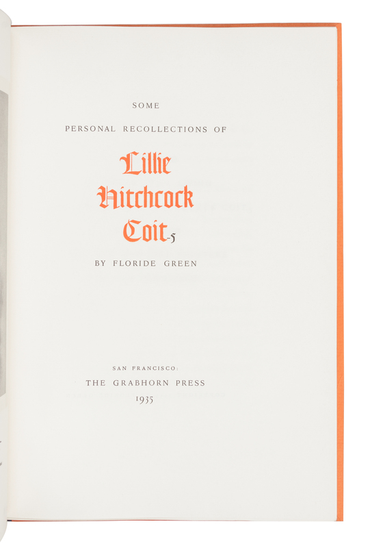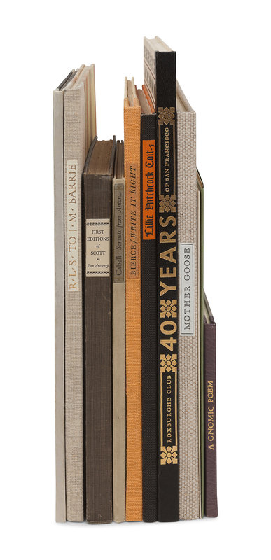 Hymns to Aphrodite. 1927. 4to. Original half vellum. One of 200 unnumbered copies. -- GREEN, Floride. Some Personal Recollections of Lillie Hitchcock Coit. 1935. 4to. Original cloth-backed boards. One of 450 unnumbered copies. -- BARNES, R. G., translator. An Anglo-Saxon Gnomic Poem. 1968. Oblong 8vo. Original morocco-backed boards. One of 400 unnumbered copies SIGNED BY BARNES. -- 40 Years. A Chronology of Announcements & Keepsakes. The Roxburghe Club of San Francisco 1928-1967. Folio. Original cloth-backed boards. One of 150 unnumbered copies. Grabhorn-Hoyem Bibliography 15. -- Mother Goose: Twenty Nursery Rhymes. 1970. 4to. Original linen. One of 300 unnumbered copies. -- And 6 others. Together, 11 works in 11 volumes, most limited editions, most published San Francisco by the Grabhorn Press or Grabhorn-Hoyem, condition generally fine, complete list available on request.