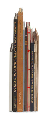 [CUALA PRESS]. YEATS, William Butler (1865-1939). The Death of Synge and Other Passages from an Old Diary. Dublin: The Cuala Press, 1928. 8vo. Original linen-backed boards. One of 400 unnumbered copies. -- [WATCH HILL PRESS]. SIMON, André L. Star Chamber Revels. Peekskill, New York: Watch Hill Press, 1937. 8vo. Original cloth-backed boards; original glassine. One of 275 copies. -- [ROGERS, Bruce, his copy]. DUSCHNES, Philip C. Bruce Rogers A Gentle Man From Indiana. N.p.: The Stinehour Press, 1965. 8vo. Original printed stiff paper wrappers cord-tied. One of 750 unnumbered copies. BRUCE ROGERS' COPY. -- [BLACK SUN PRESS]. MINKOFF, George Robert. A Bibliography of the Black Sun Press. Great Neck, NY: G. R. Minkoff, 1970. 4to. Original cloth. One of 1250 unnumbered copies. -- [LIME KILN PRESS]. EVERSON, William. Blame it on the Jet Stream! [Santa Cruz, CA]: Lime Kiln Press, 1978. Oblong 8vo. Original quarter blue morocco gilt. Number 131 of 150 copies. -- And 4 others. Together, 9 works in 9 volumes, ALL LIMITED EDITIONS, condition generally fine, complete list available on request.