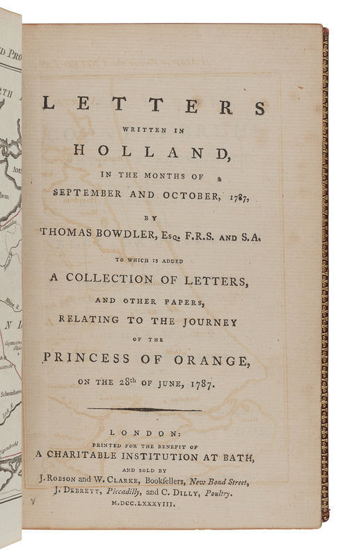[FORE-EDGE PAINTING]. - [CURRIE, Miss C. B. (1849-1940)]. BOWDLER, Thomas. Letters Written in Holland. London: J. Robson and W. Clark, J. Debrett, and C. Dilly, 1788.