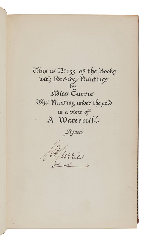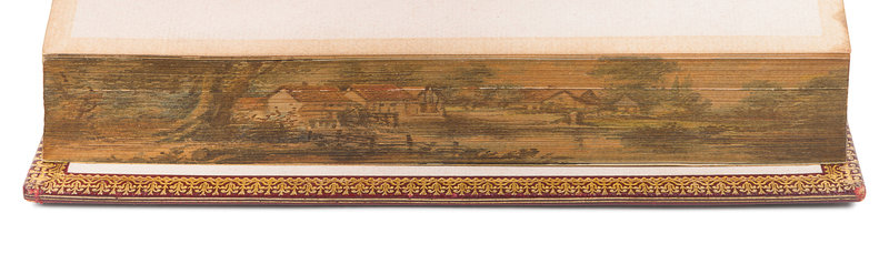8vo (195 x 221 mm). Folding map frontispiece and an additional folding map. (Mild, even toning.) 19th-century dark red straight-grained morocco elaborately gilt, edges gilt concealing a FORE-EDGE PAINTING of a watermill by Miss C. B. Currie (very minor wear to extremities and joints).