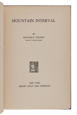 FROST, Robert (1874-1963). Mountain Interval. New York: Henry Holt and Company, November 1916.
