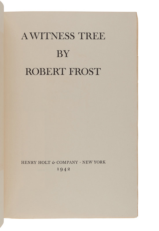 FROST, Robert (1874-1963). A Witness Tree. New York: Henry Holt & Company, 1942.