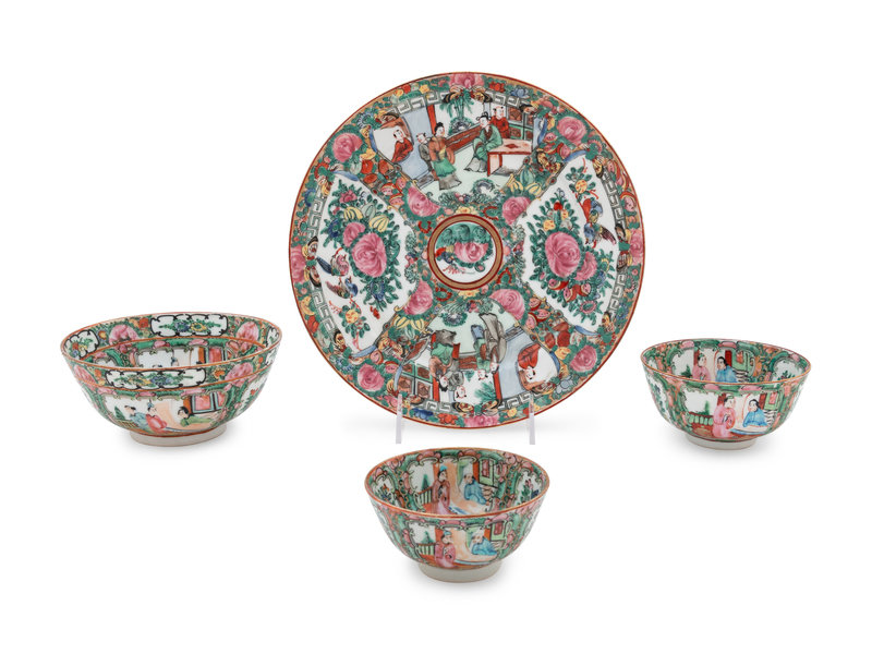 A Partial Set of Chinese Rose Medallion Porcelain Dinner Service