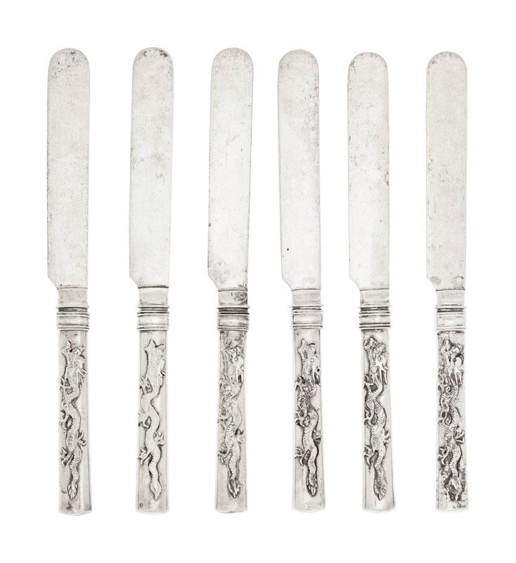 約1870-1920年 上海德祥 中國外銷銀甜點刀一組六件