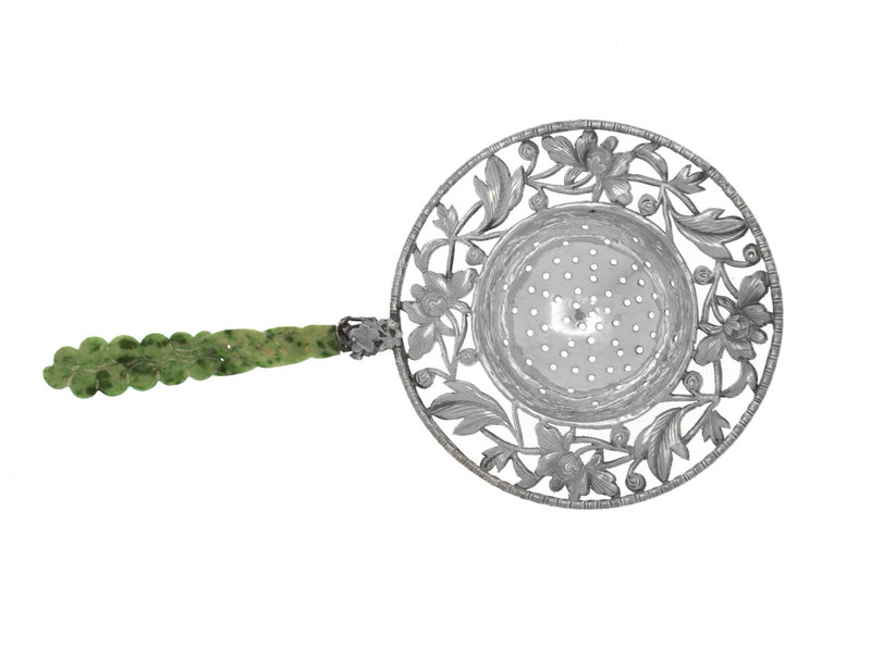 晚清/民國 中國外銷銀茶勺,帶鑲翠手柄