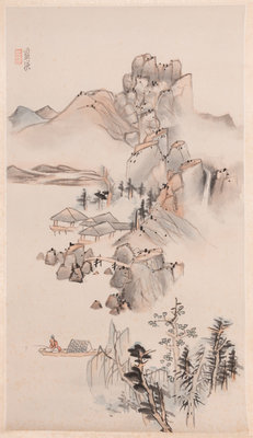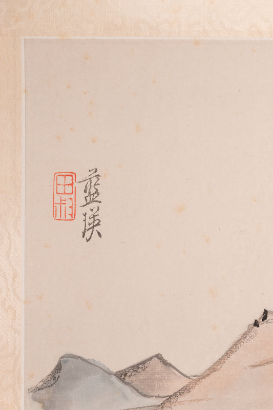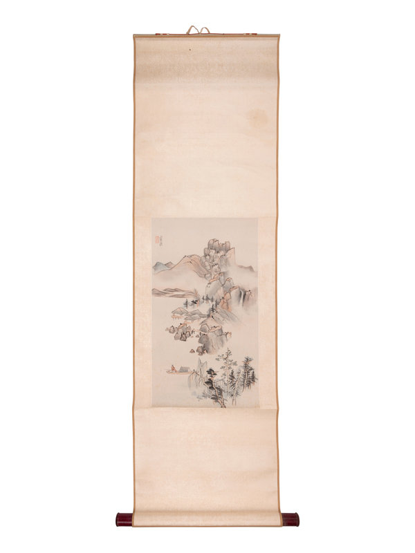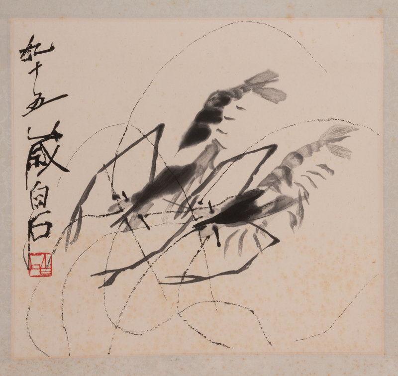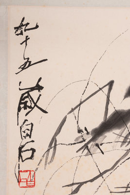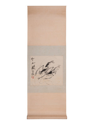 the first after Lan Ying (1585-1664) depicted landscape, the second after Qi Baishi (1864-1957) depicting a pair of shrimps, each mounted as a hanging scroll.