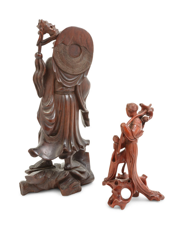 Two Chinese Carved Hardwood Figures of Immortals