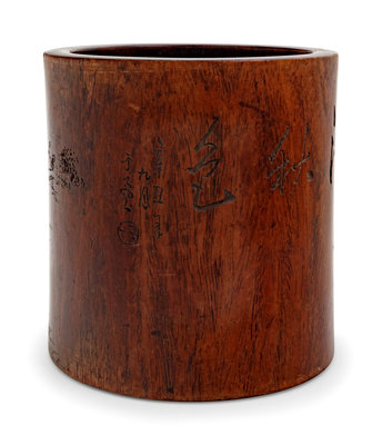 A Chinese Carved Hardwood Brush Pot, Bitong
