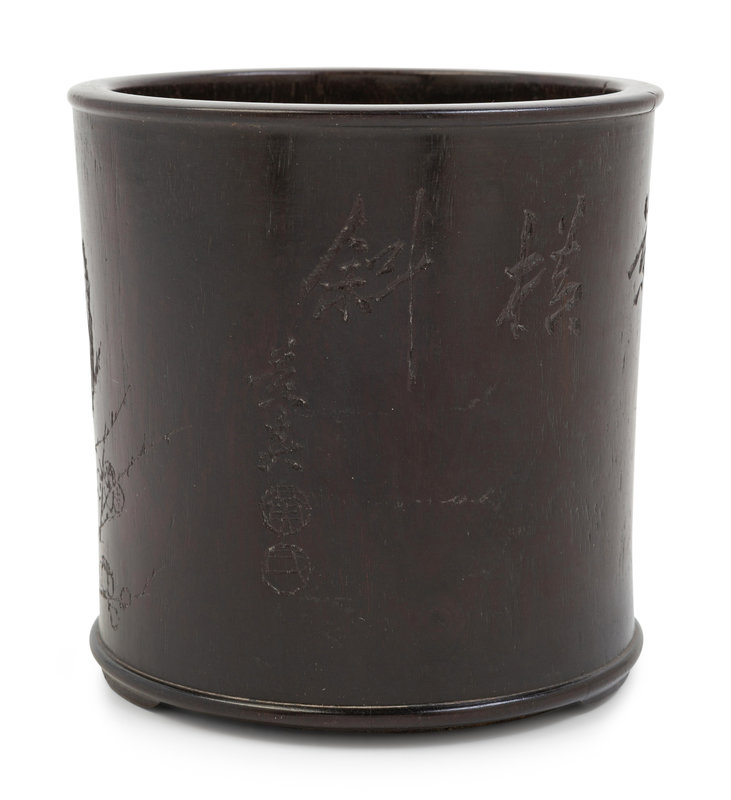 A Chinese Carved Rosewood Brush Pot, Bitong