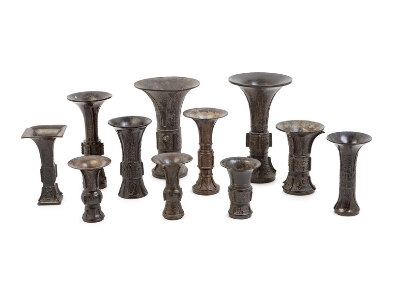 12 Chinese Bronze Gu Vases