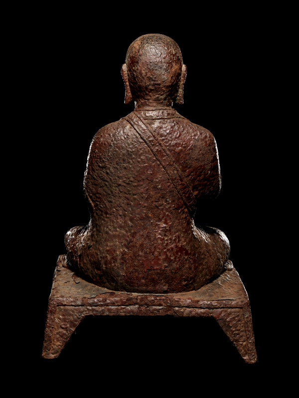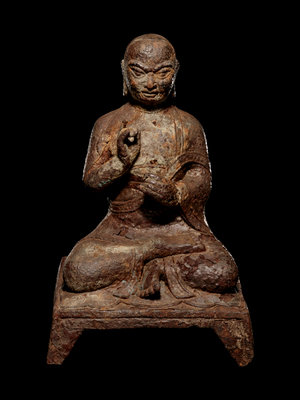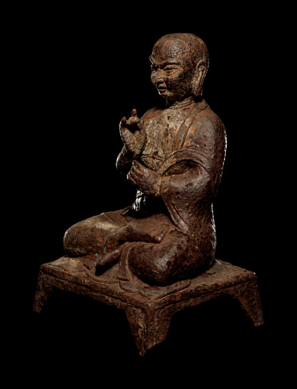 A Tibetan Cast Iron Figure of a Monk