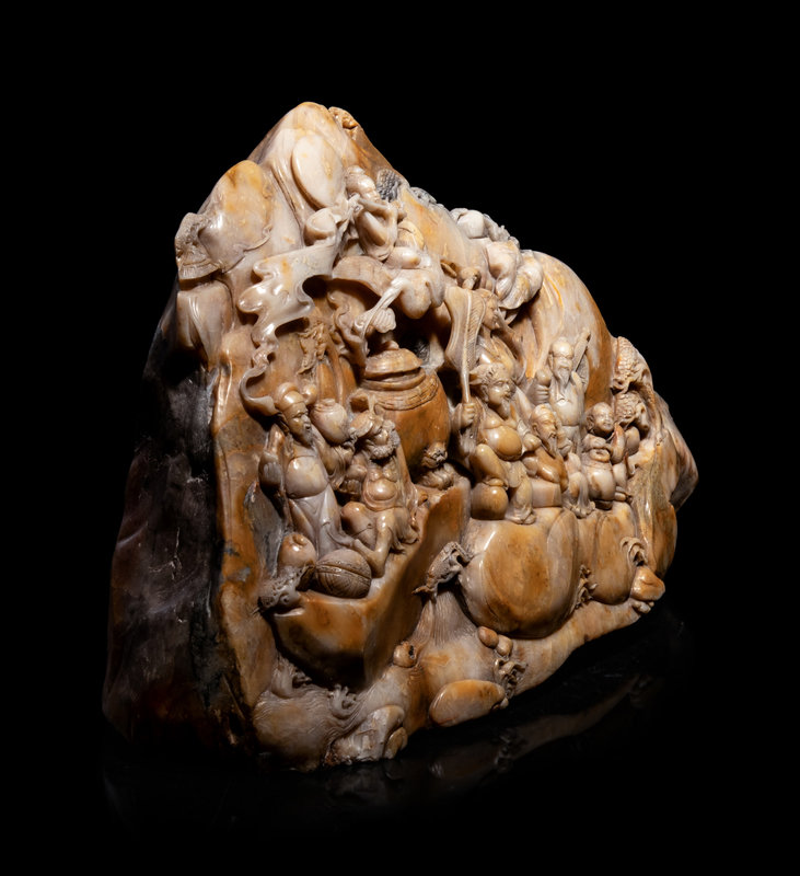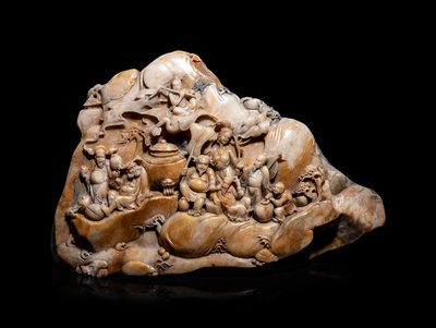 A Large Chinese Carved Hardstone Boulder