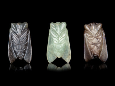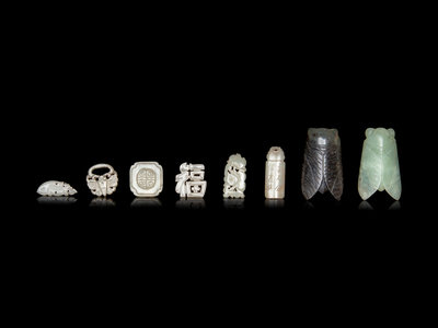 comprising three figures of cicadas, one fish, one butterfly, two square, one boy, four flowers, one seal and two in the forms of characters.