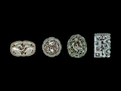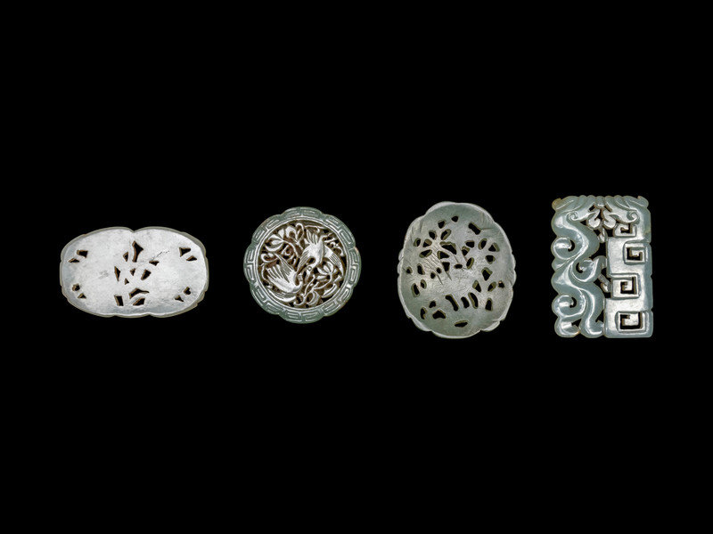 Four Chinese Celadon Jade Carved and Reticulated Pendants