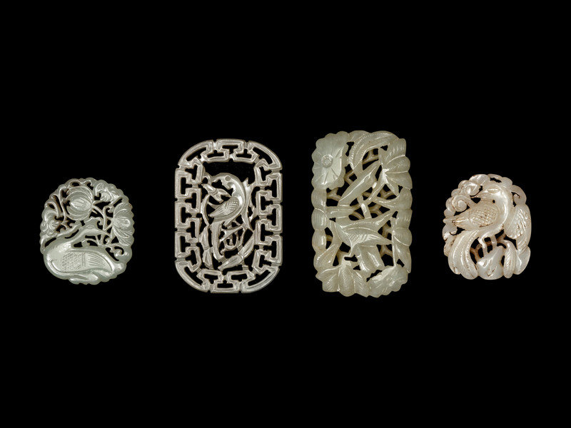 Four Chinese White and Celadon Jade Reticulated Pendants