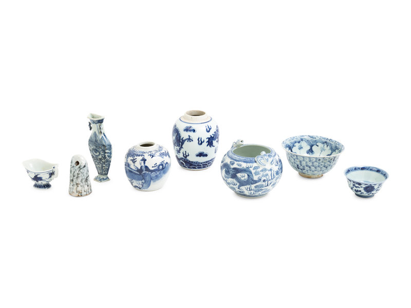 Eight Chinese Blue and White Porcelain Articles
