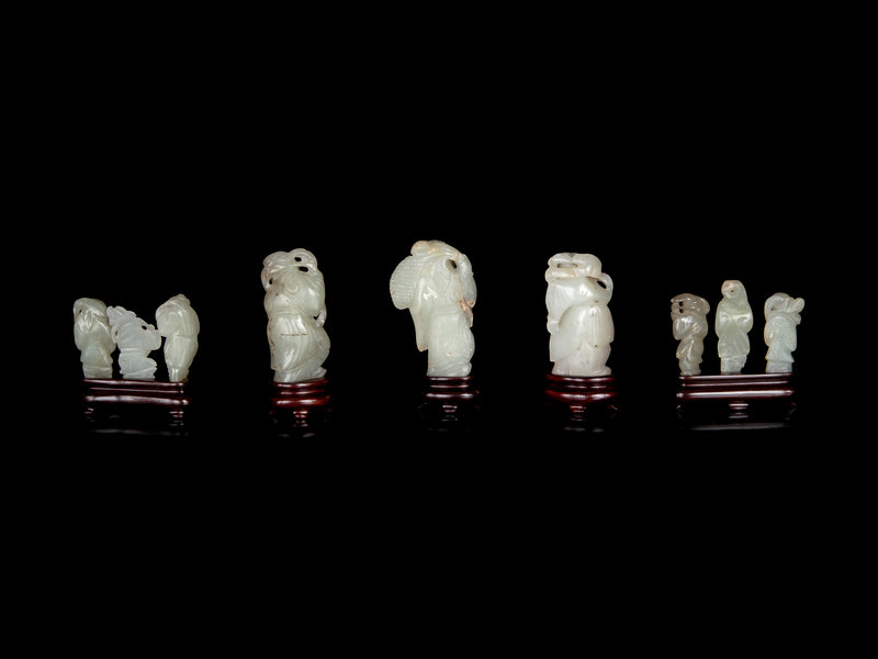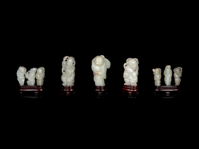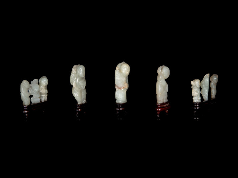 Nine Chinese Carved Celadon Jade Figures of Boys