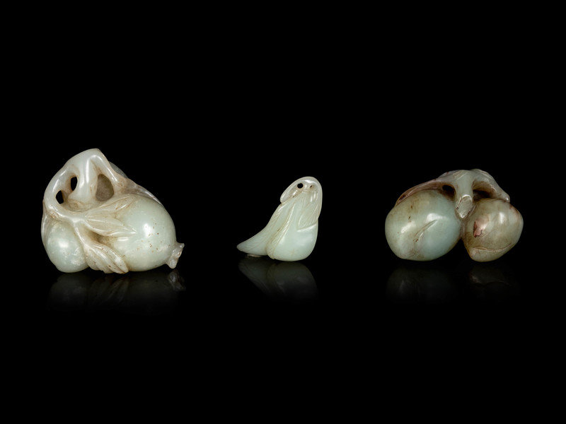 Three Chinese Celadon Jade Carvings of Fruits and Vegetables