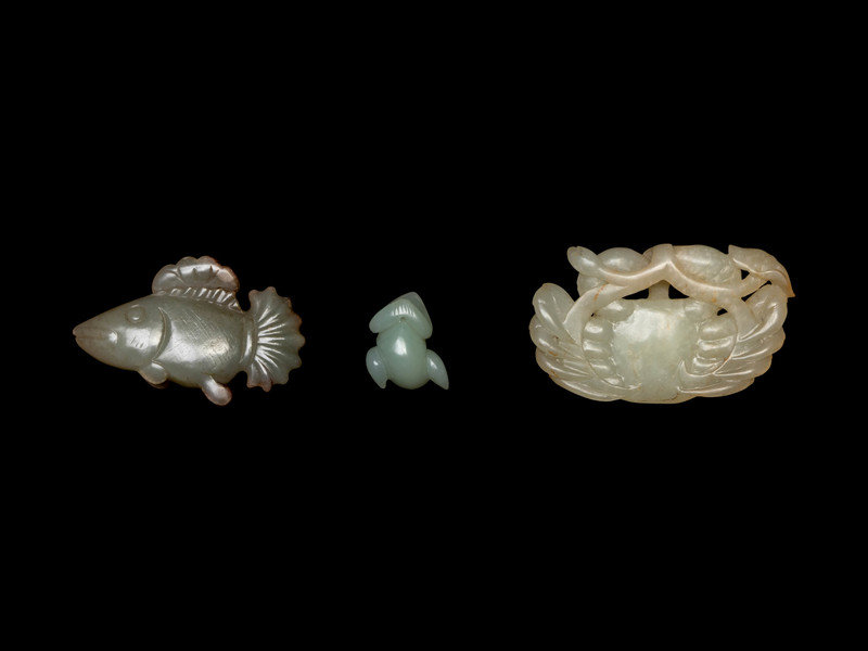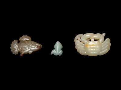 Three Chinese Celadon Jade Carved Figures of Animals