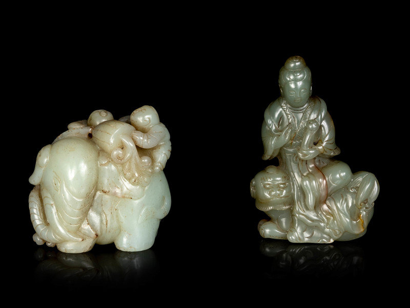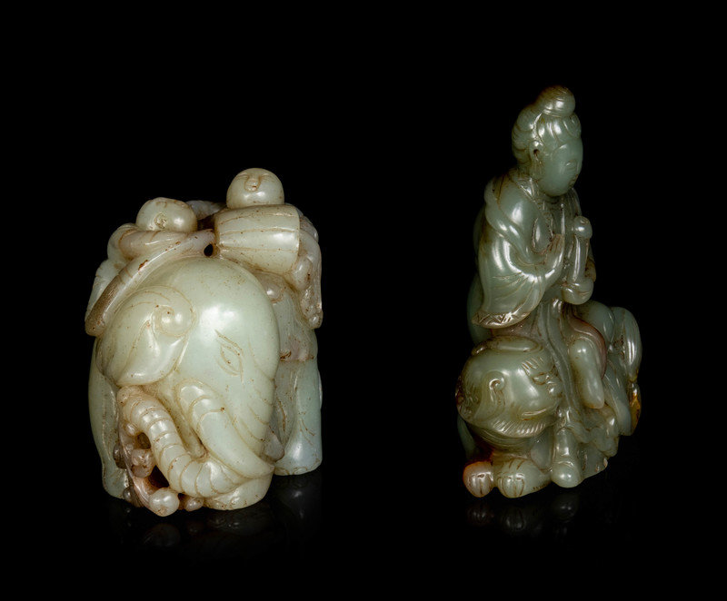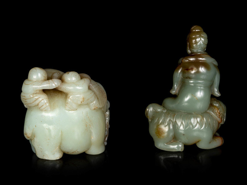 Two Chinese Celadon Jade Figural Groups