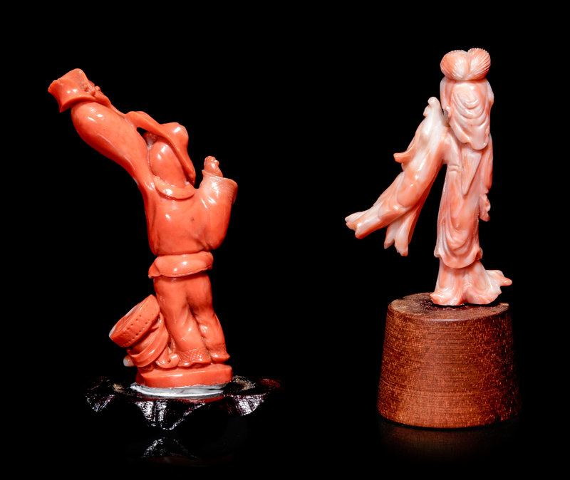 Two Small Chinese Coral Figures