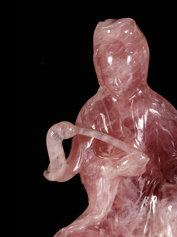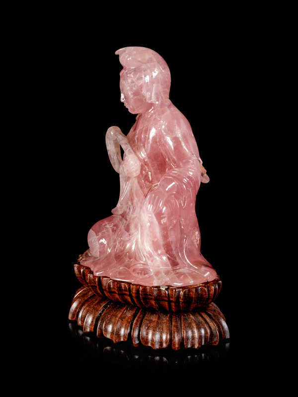 A Chinese Rose Quartz Figure of Guanyin