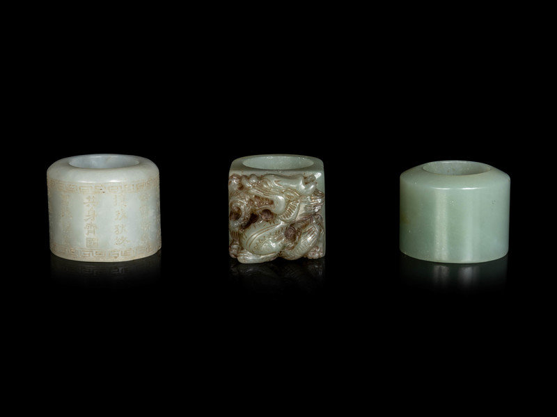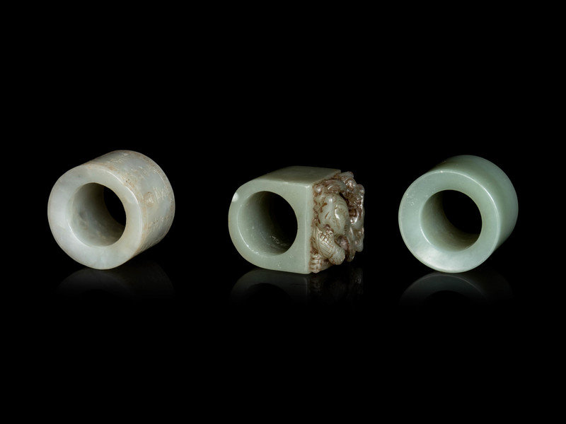 Three Chinese Celadon Jade Archer's Rings