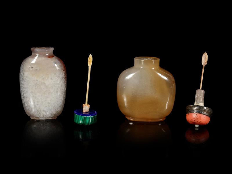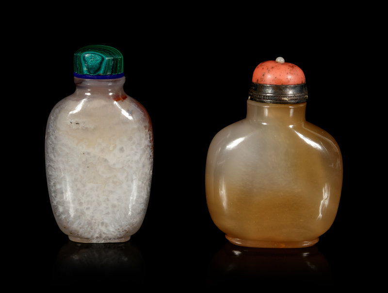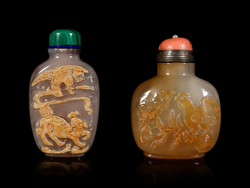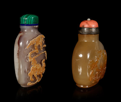 十九/二十世紀 瑪瑙雕動物圖鼻煙壺兩件