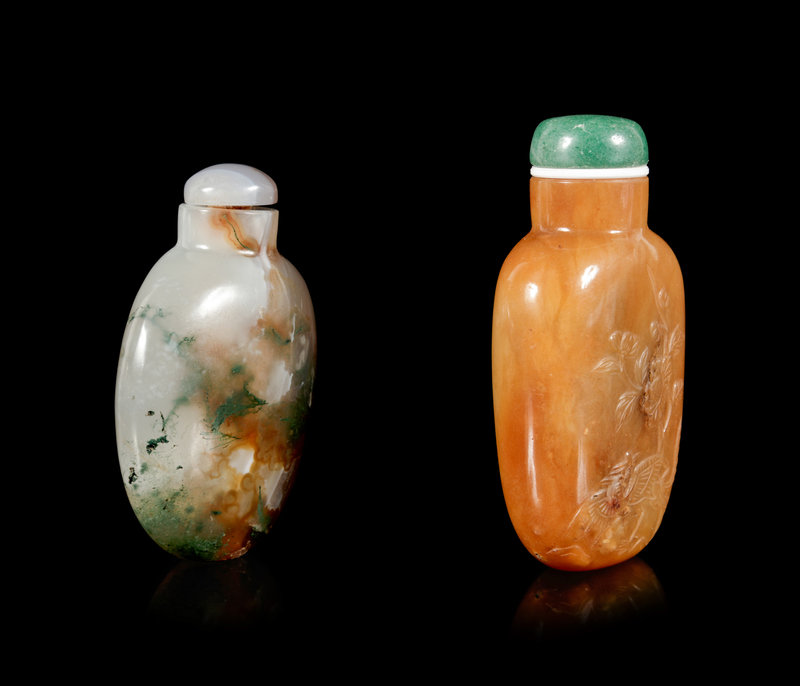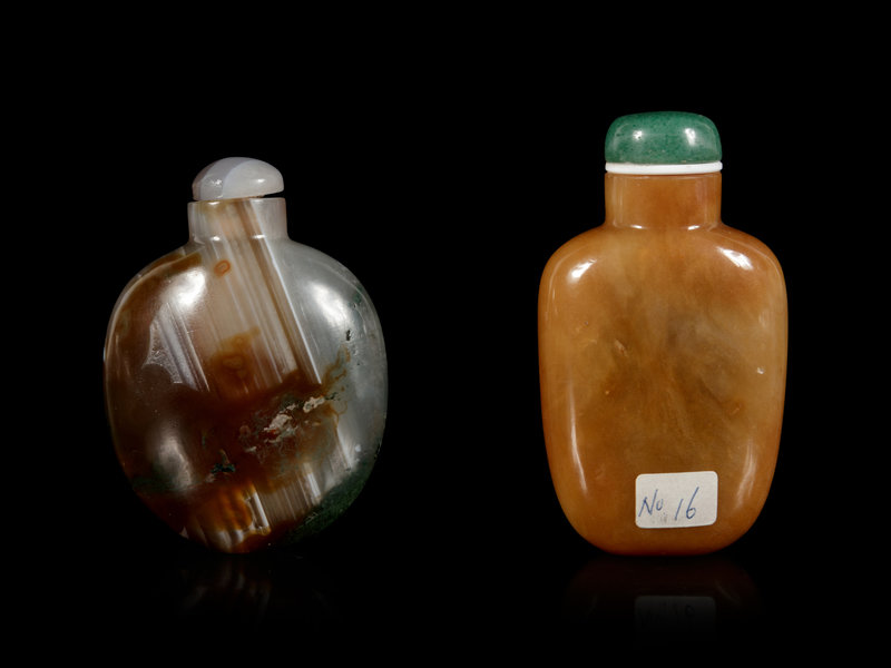 Two Chinese Hardstone Snuff Bottles