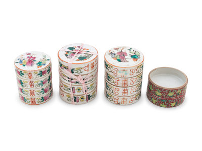 Four Chinese Famille Rose Porcelain Tiered Boxes