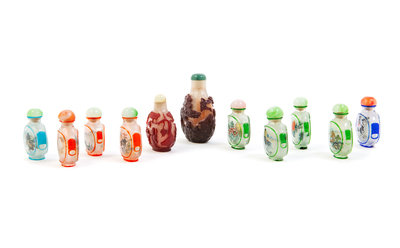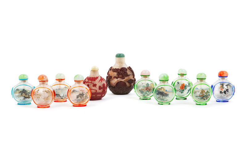 comprising nine inside-painted examples, one black overlay example, and one red overlay examples.